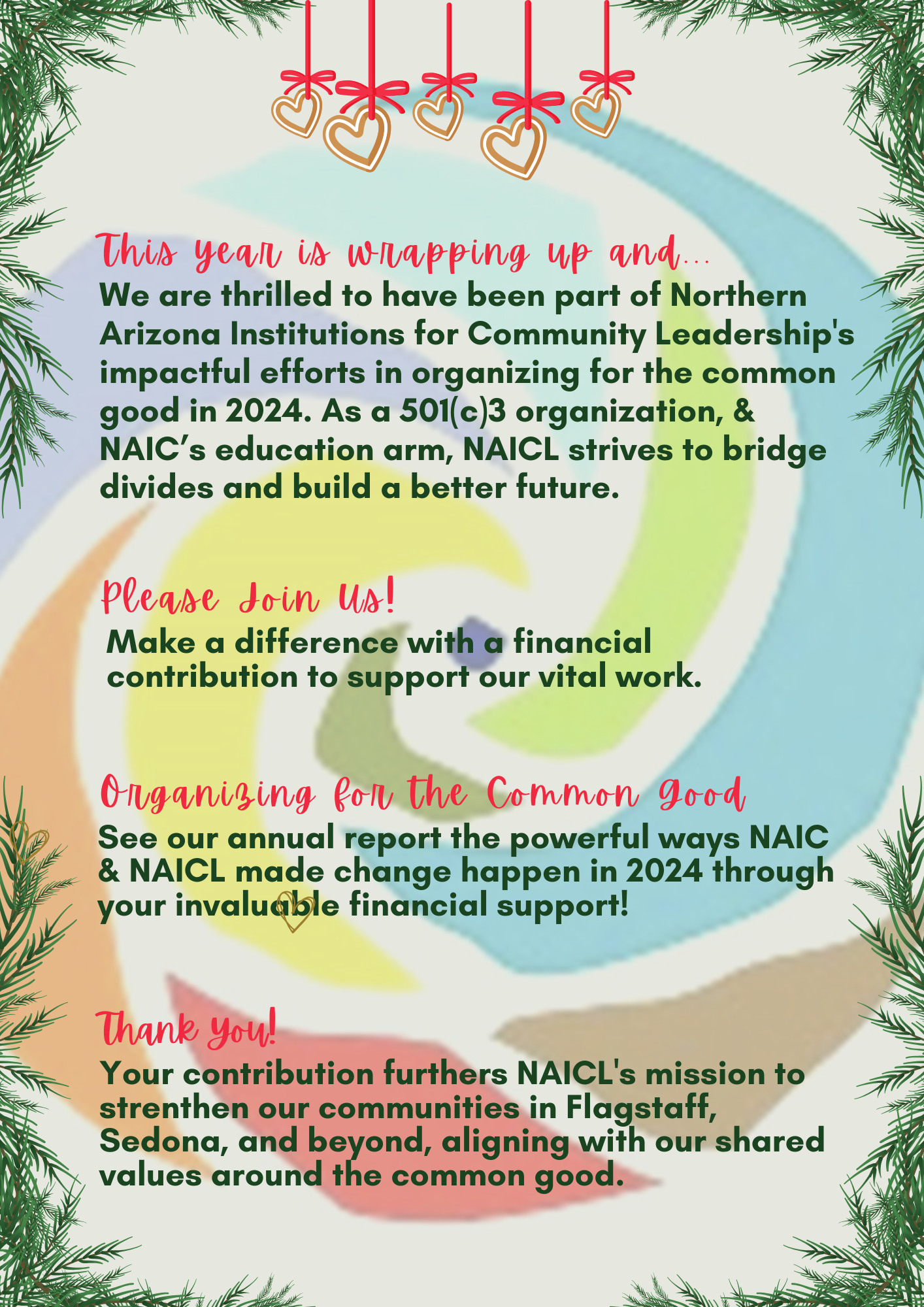 Northern Arizona Institutions for Community Leadership (NAICL), is the active training and education arm of NAIC, and is a registered 501(c)3 nonprofit organization. Donations are 100% tax-deductible. All funds are used exclusively for non-partisan educational activities.